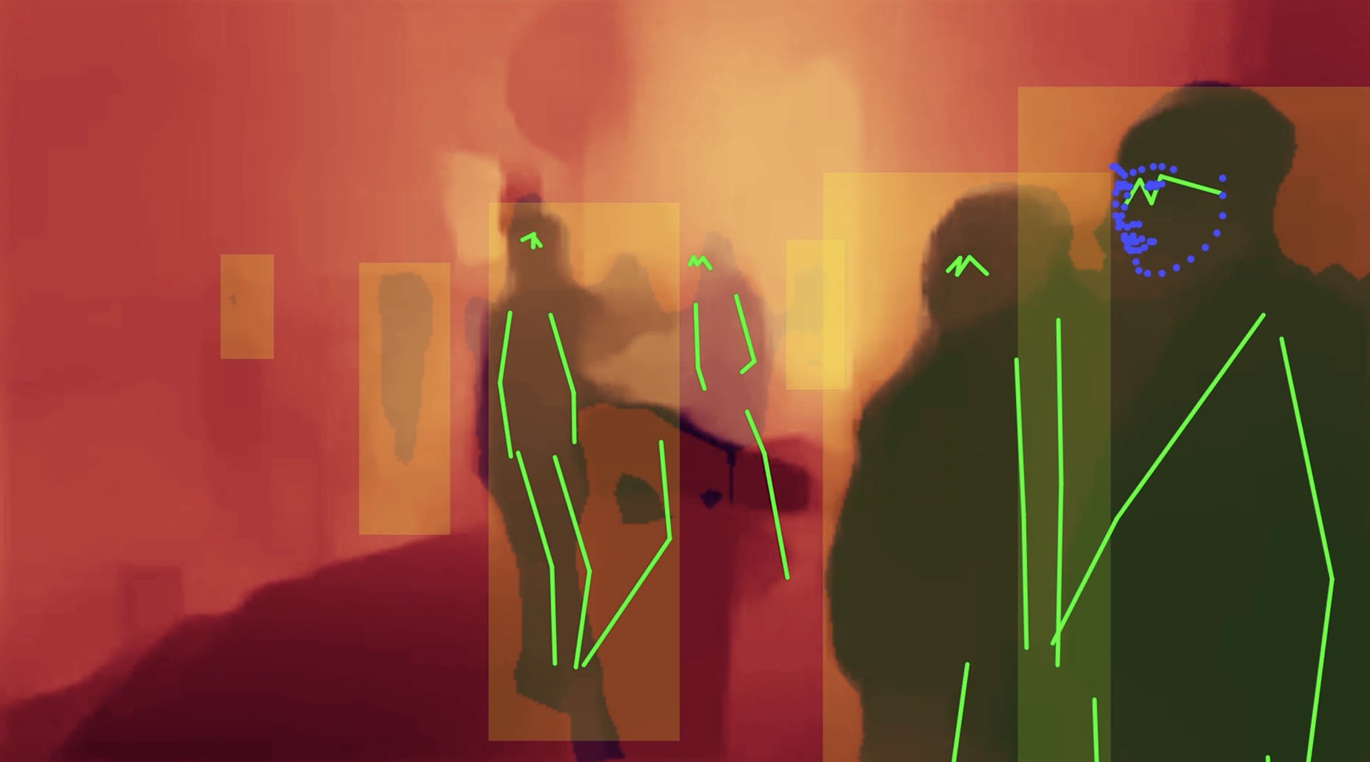 The starting point of Emidio Battipaglia’s project All Watched Over by Machine of Loving Grace Ver 1.1b is the eponymous BBC documentary by Adam Curtis (2010), which argues that humanity has been "colonised" by computers. The nearly 3-hour video addresses the widespread deployment in the People's Republic of China of a CCTV architecture connected to machine vision systems, a technology used as a coercive control system in urban space and as an efficient communicational tool of the regime. Despite the country being systematically quoted in surveillance studies, not much is known though about the specifications of these systems, which remain a black box. Battapaglia’s project combines several layers of image recognition technologies, such as depth maps, movement prediction, body detection and face detection, using the official footage of the 70th anniversary celebrations of the country. Using the perfectly choreographed images of soldiers marching and tanks rolling as raw data, the project offers a conceptual counter-model to the allegedly dissident or illegal activities, video-surveillance and the correlated social credit system aim to repress. Counter-surveillance strategies have been endorsed by numerous artists in recent years, especially since the exponential growth of dark activities by US government agencies since 9/11. Machine vision has been developed conjointly by military and industry for decades and its uses have become more diversified, as notoriously shown by Harun Farocki in his film War at Distance in 2003. And as pointed out by Grégoire Chamayou in his book Drone Theory (2015), machine vision raises far-reaching ethical, legal and political concerns: automated decision-making is now even used in lethal drones strikes. The politics of surveillance are now shaped by automated assessments, with all the biases and errors the technologies entail, and have given unrestrained agency and responsibility to supposedly intelligent systems.